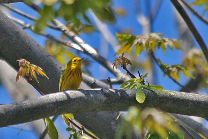 the second highlight was seeing some yellow warblers. at first i thought they were goldfinches, but this time of the year, during the spring migration, when you see a yellow bird it's more often than not a warbler instead of a finch. through the binoculars it was easy to tell it was a warbler, and back in the car flipping through the peterson guide we confirmed it to be a yellow warbler. and it's actually sort of ironic, that despite my several trips to the mt.auburn cemetery, this was my first yellow warbler sighting of the season. not sure what my warbler count is but definitely more than somebody who's just a casual observer of birds.