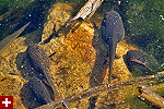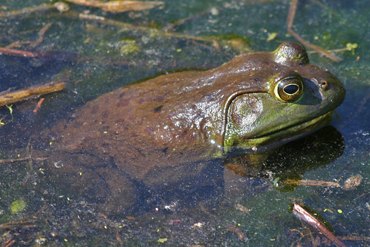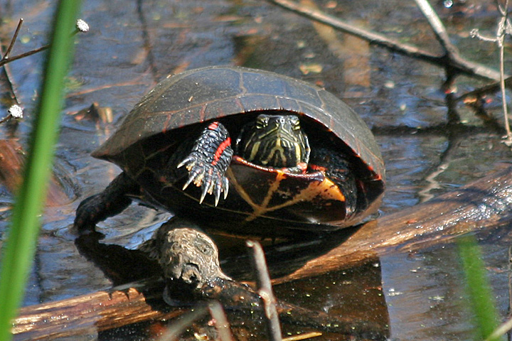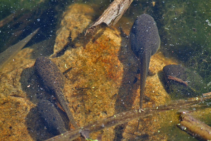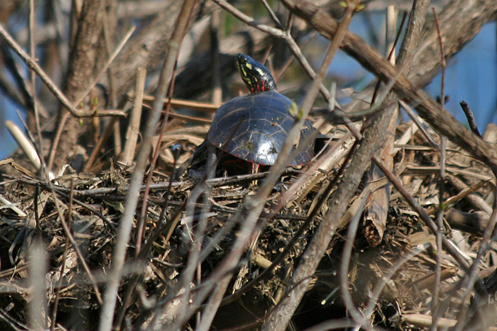 besides the snake, we saw many painted turtles. i like to have a moratorium on painted turtle sightings; they're just too common. in the future, i will only report on other turtles. we also saw frogs, all bull frogs and their large tadpoles.