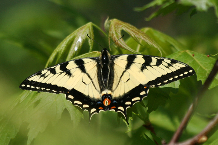 i'm always happy to find insects: there were some tiny damselflies (turns out they were eastern forktails) and a large green darner (no photo) passed through the marsh. a large yellow butterfly came through as well: the tiger swallowtail.