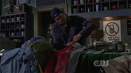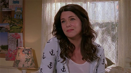 lorelai with an anchor shirt! is that supposed to be symbol, like she's the anchor? or maybe it's an allusion to sinking ratings and one of the reasons why the show is get cancelled? OR maybe it's an homage to that anchor suit worn by the town mayor in jaws?