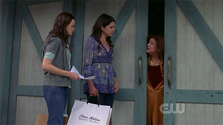 mother and daughter go around town collecting supplies for rory's eventual job trip. they visit miss patty's barn but the doors are suspiciously locked (since it's a small town, nobody locks their doors, and people can go in and out of other people's houses as they please). she opens up just a crack and says something about consulting with her muse. it sounds suspicious and neither ladies want to find out what's really going on so they leave miss patty alone.