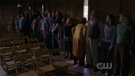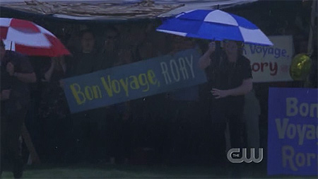 lorelai and rory quickly re-enact the graduation. the townfolks are not amused. the girls must leave quickly before the mob turns to violence.