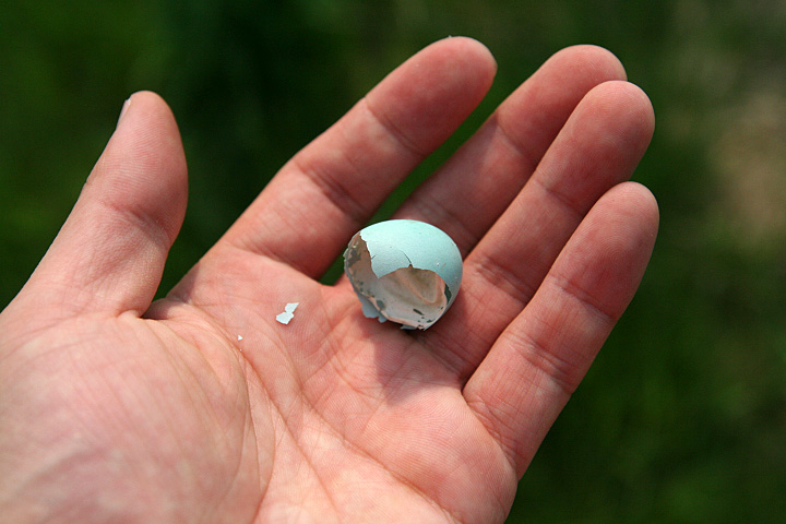 every spring/summer i find robin egg shells. why is that? is it because they're more conspicuous, with that robin egg blue? or are they most often the victims of theft by other critters? or is it because there's an exploding robin's population and i'm just finding evidence of their overpopulation? whatever the case, i'm still in awe whenever i find one (or the pieces of one). i can even remember the very first time i found a robin's egg: it was back in first grade, i was playing by a swing set when i saw this blue egg shell in the sand nearby. i don't think i knew it was a robin but i knew it belonged to a bird - just that i've never seen a blue egg before, so it blew my 6 year old mind.