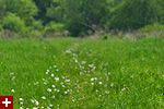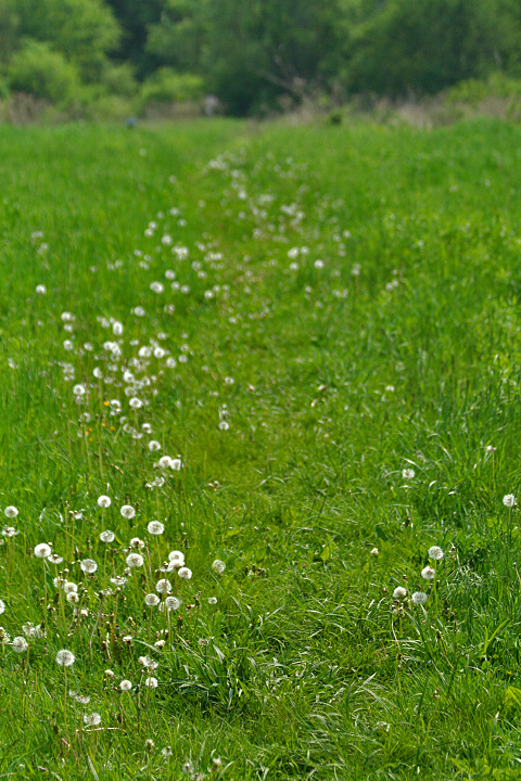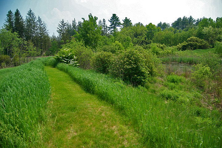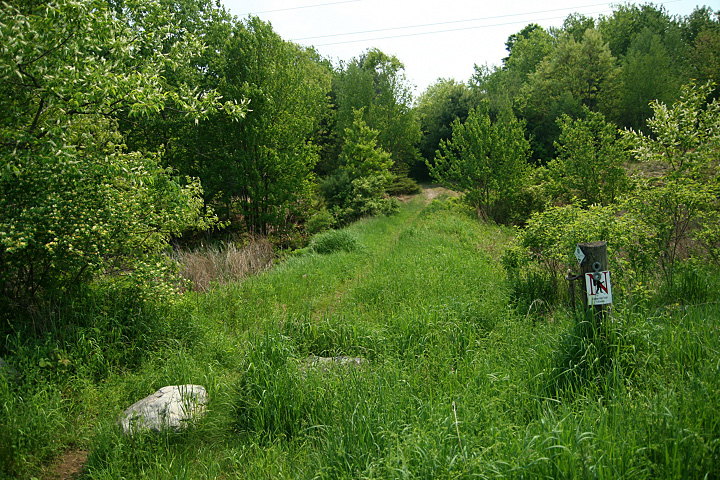 the trail crossed some power lines, then some train tracks. that lead to an open grass field, where i saw swallows flying about and i think a yellow warbler as well. the caretakers seemed to have a mowed a trail so the grass wasn't very high but i was checking my pants occasionally to make sure i wasn't harboring any hitchhiking ticks.