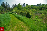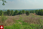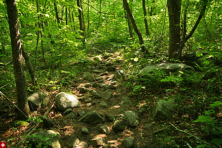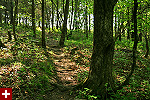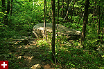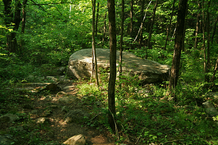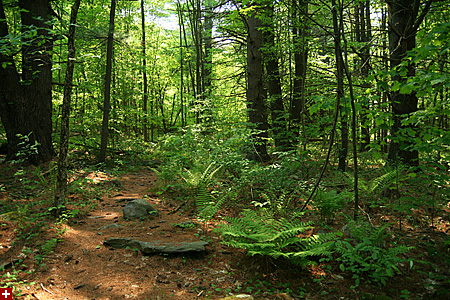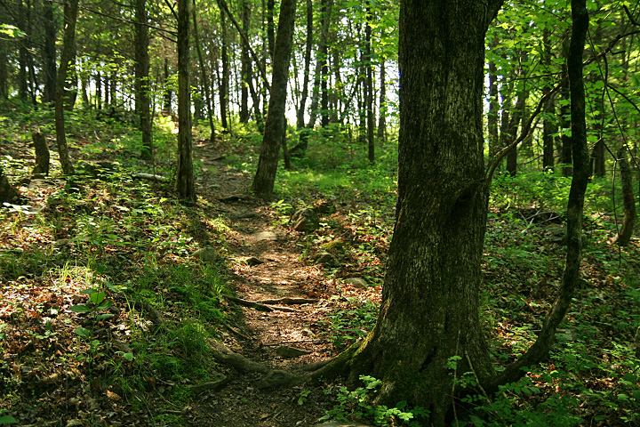 there were so many it felt like it was raining mosquitoes. despite being protected by an invisible shield of insect repellent, it still freaked me out to have my bare arms and face and my hair be brushed by mosquitoes trying to find a clear spot to take a bite. even some of the photos i took had blurry spots on the image - not because of dust on the CCD chip, but because mosquitoes were flying in front of the camera lens. i walked hurriedly through this portion of the trail, as it went up cedar hill to the summit.