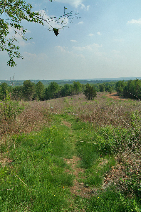 finally i made it to the summit. i was expecting a desolate rocky outcropping but turns out there's a large open area populated by various invasive plants. i noticed there were a lot of poison ivy so i stepped very carefully. from here there was a good view south (naturally to the town of southborough). further down was more open space before it became woods again.