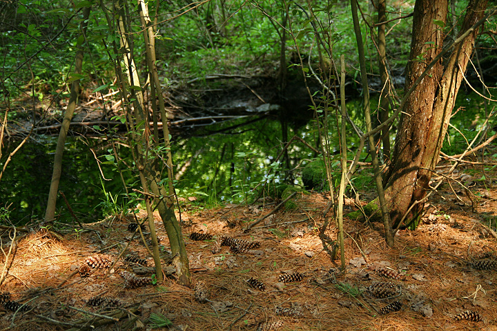 instead of continuing further (the trail wasn't a loop anyway, i'd have to retrace my steps sooner or later), i turned back into the mosquito infested woods from whence i came.