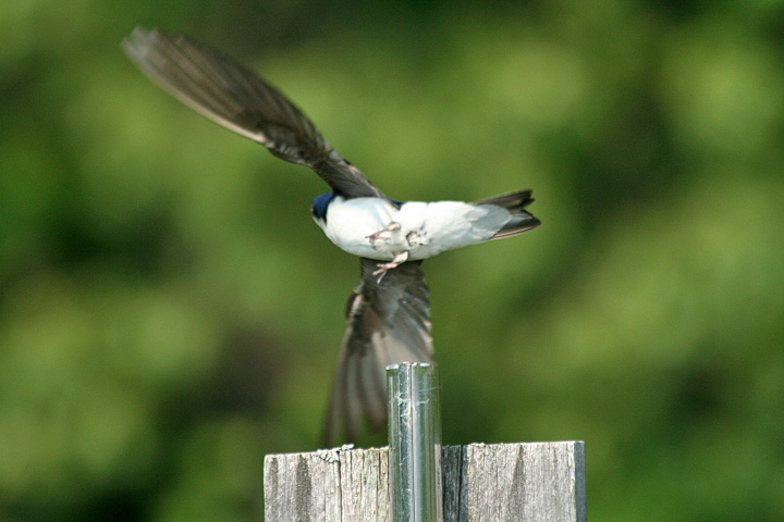 i consider tree swallows common enough that i don't pay any particular attention to them anymore (i've seen them at fresh pond, i've seen them at mt.auburn cemetery). however, getting a good photo of a tree swallow is still a challenge because usually they're flying around catching insects. this particular subject i saw it land on the post of a bird house. i slowly inched my way closer, continuously taking photos along the way, making sure i wasn't trampling over any poison ivy patches. finally it did fly away, but i don't think it was anything i did, it went off to hunt for more insects.