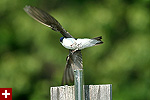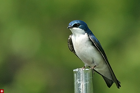 the bird houses dotting the summit of cedar hill in northborough apparently are homes for tree swallows. though beautiful (an all-white bottom topped by a metallic blue on top),