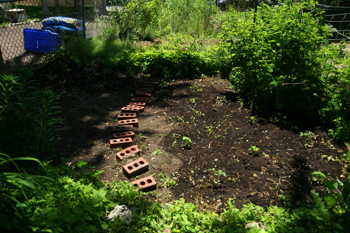 first thing this morning i went to the harvard square post office to buy some new stamps from the vending machine (had a bunch of magazine subscription bills to send out). it was close to lunchtime so there was a big crowd. next i went to water the garden. notice that around noontime half my plot is covered in the mulberry tree's shadow. fortunately i sort of had an idea this might happen so i planted most of my vegetables in the one area that gets sun exposure the entire day. there might be sunnier plots, but i have the option of growing both sunny and shady plants. from there i went to market basket to get some ingredients for tonight's dinner. i helped my parents pick up some cucumbers and went to the cafe to drop them off before returning home to work for a few hours.