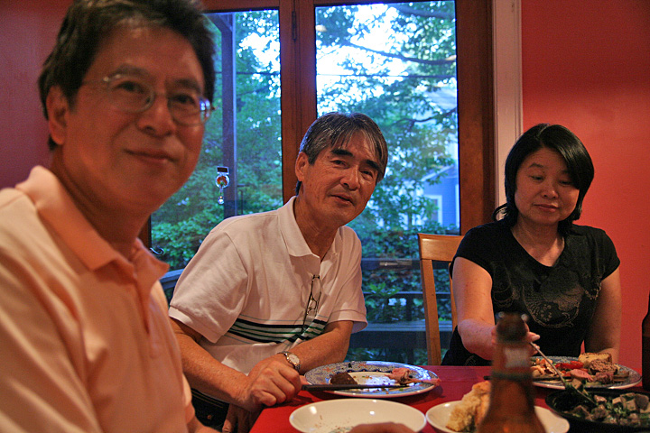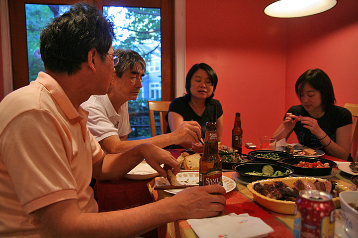 their 7-year-old grand daughter finished dinner early (she had a lot of sushi earlier so she wasn't especially hungry) and ran off into the living room to watch the disney channel, some spanish-language shows, and finally shrek on TBS. close to 10pm everyone left. only then did i have a chance to check the red sox score online, matsuzaka losing to randy johnson. the yankees on the other hand continue their winning streak to 6 games.
