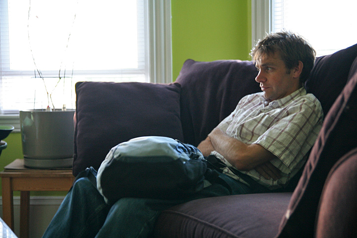 in the early evening rob dropped by unexpectedly, minutes before my family were to show up. he'd biked here, his $10 ride splayed out on my front steps. he was in the area for work reasons and decided to pay me a visit and also to get hooked up with some sweet software action. i quickly burned him a cd before ushering him out the door.