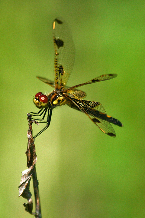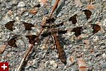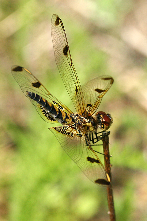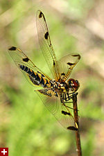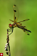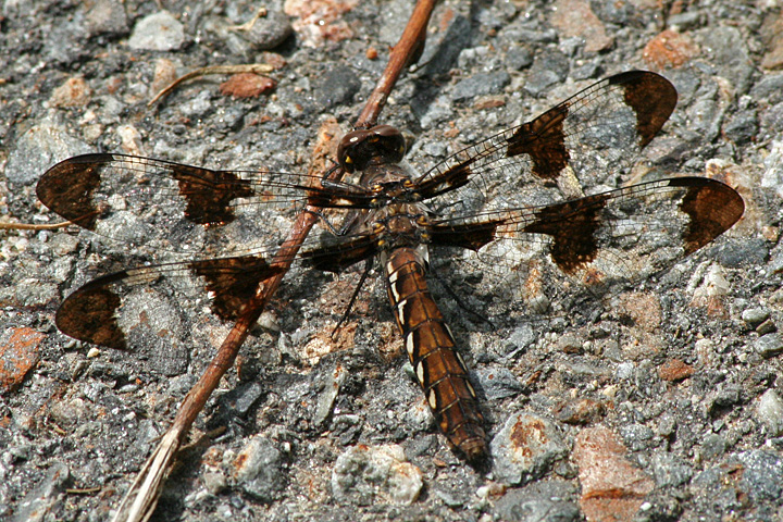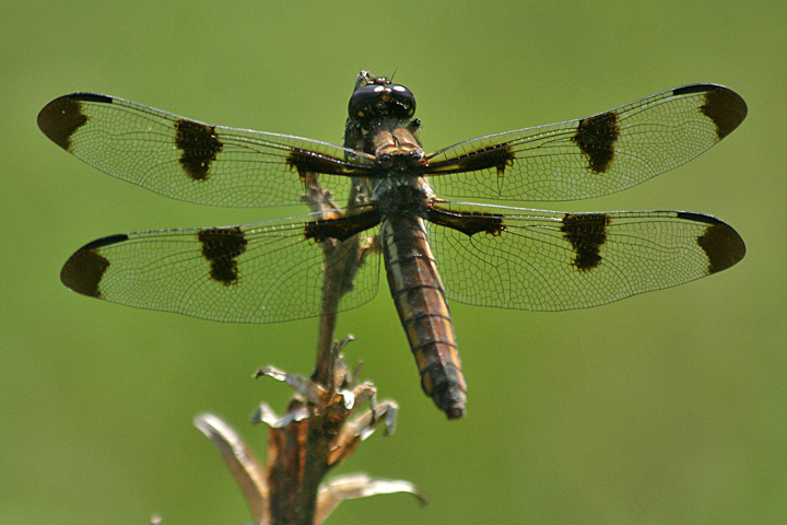 nevertheless, i did see some dragonflies: pondhawks, blue dashers, twelve-spotted skimmers, whitetails, clubtails, and calico pennants. nothing new though, all species i've seen before. at one point a green female pondhawk landed on my white t-shirt. i tried to get her to perch on my finger, her two pairs of front legs wrestling with my digit, until she got bored and flew away. i don't want to brag, but i seem to have an instinct for handling dragonflies. usually with a little bit of effort, i can coax some of the friendlier ones to land on my fingertip.