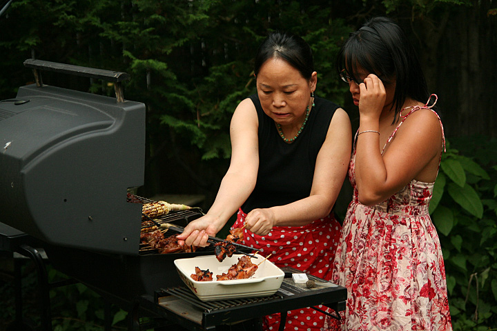 with the garden work only half finished, i went inside to get a drink of water and to take a short break, taking another shower while i was at it. when my father came home from picking up my mother at the cafe, he and i worked the rest of the garden, transplanting some stunted tomatoes and cucumbers to more optimal spots, fertilizing the soil, mulching everything with a thick layer of marsh grass, then gave everything a nice watering. that whole time my mother and sister were barbecuing some dinner, corn, ribs, and chicken. after i cleaned up everything outside, i took yet another shower, before joining my family for dinner around 7pm. later in the evening i helped my father try to get our old NEC stylewriter 95 working (our attempts were unsuccessful, some sort of hardware issue, a phantom paper jam).