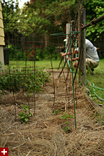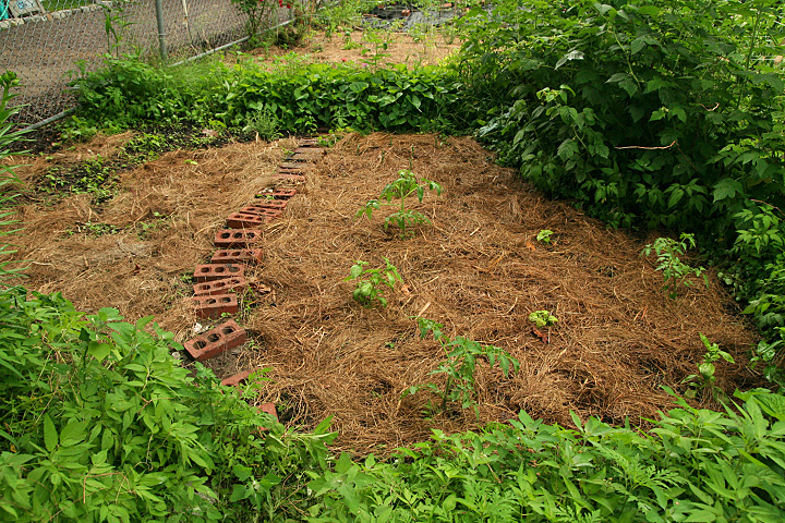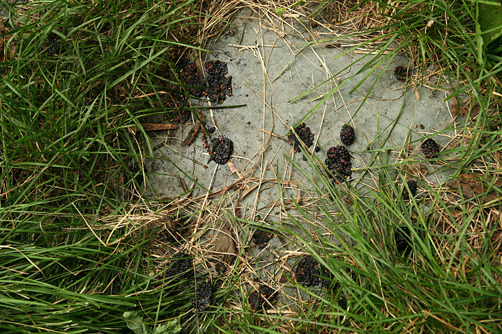 i went to my parents' place in belmont to drop off one of the hay bales (marsh grass, sorry) (listening to the red sox game all the while), where my father was already home mowing the lawn. i then returned to cambridge, where i went to community garden to do some work. i saw the woman who runs the program working on her plot. i gave her an enthusiastic "hi!" but she looked at me and groaned, either she didn't recognize me or i caught her at a bad time. maybe if i told her i was the wayward gardener who neglected his plot to run off to china for the summer, maybe then she'd remember who i was. anyway, i was there to fertilize my garden and them to mulch it over with the marsh grass. did i mention today was a very humid 80 degrees day? every though it wasn't a lot of work, i ended up covered in sweat. and the whole time mulberries continue to fall from above. i picked them up off of the grass and ate a few. i might collect some tomorrow, share them with people who've never tasted mulberry before. the marsh grass was old, and every time i ripped off a piece, there'd be some mildew dust, which can't be healthy.