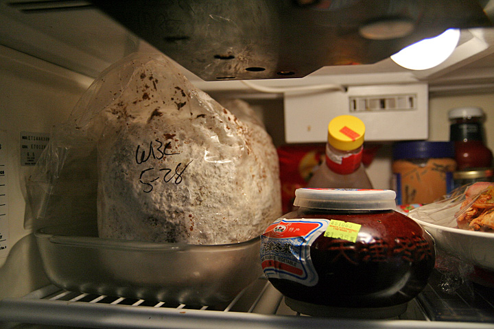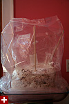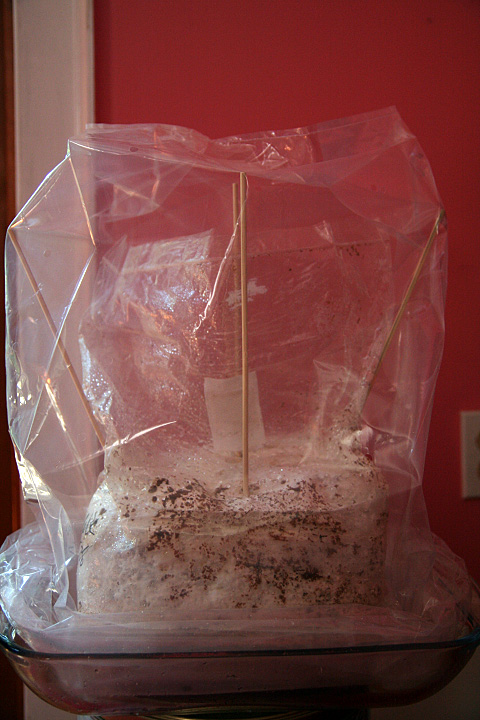 after leaving my mushroom kit in the fridge to chill for about a week, i finally brought it out today to start growing mushrooms. i cut holes in the side of the mushroom bag, stuck wooden skewers on the top, and created a growing tent. i can never be sure if i'm doing it right; worst thing that can happen is nothing will grow, and it got the kit for free anyway, so it's not too bad. rest of the day i tried to have some semblance of work, since i won't be doing much of it tomorrow.