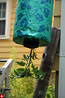 bruce was kind enough to drop me off at my parents' cafe while he went to whole foods to buy some sushi (cold food) for dinner. i went with my father to belmont to pick up one of several old air conditioners sitting in their sun room. next we went to home depot where i got some potting soil and picked up a single tomato plant. returning to belmont, we set up the upside down tomato grower (i bought it last year but never used it). stuffed with dirt, the bag was so heavy it bent the iron shepherd pole (although it'll probably hold). my father was so impressed he wanted to hang it inside the house until he realized it'd leak every time you watered it. afterwards we drove two cars back to cambridge, my father returning to the cafe, while i went to my place to drop off some potting soil (to repot my prayer plant), a bag of unused marsh grass, and some rusty tomato cages. i returned to the cafe to return the car and to help my father install the AC at my aunt's place (where my grandmother will staying when she arrives next week from san jose). with that finished, i retrieved my motorcycle and came back home, stopping by market basket briefly to get some ingredients for tonight's dinner.