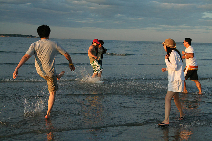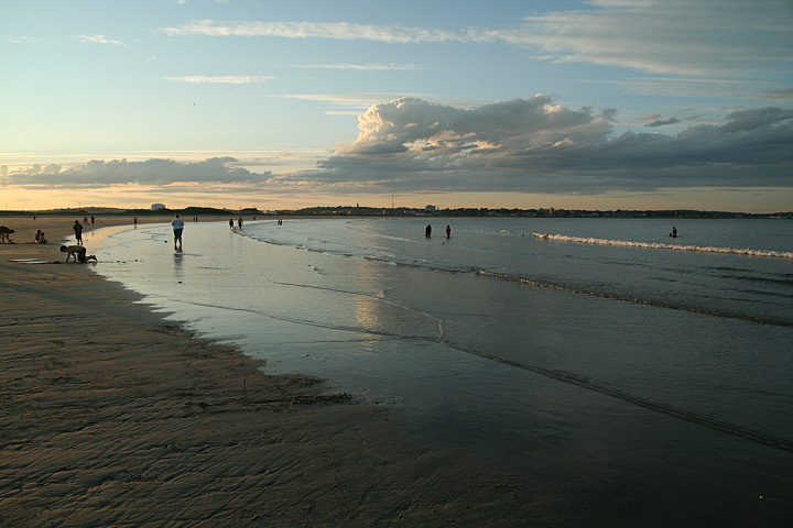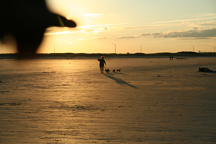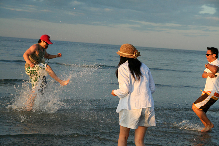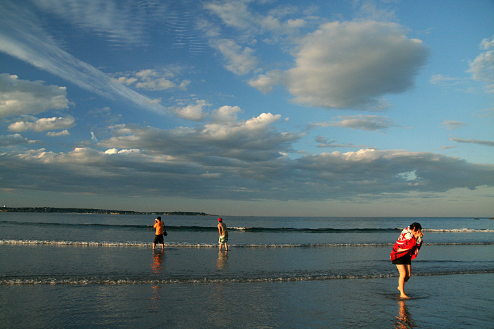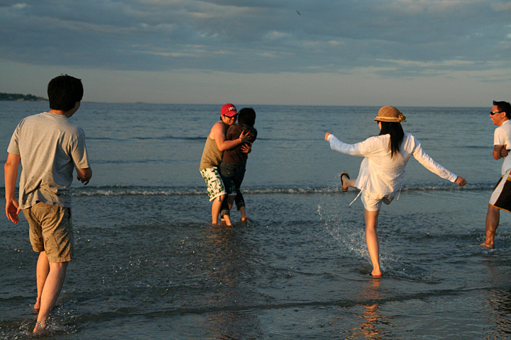 cecilia recommended a place and we all followed her based on her directions. we got a little bit lost but thankfully one of the cars had gps so that vehicle took the lead. eventually we made our way to nahant, to long beach, a place i have some familiarity with (that time with joel, that time with jesse). the sunset was just setting and lit up everything in gold.