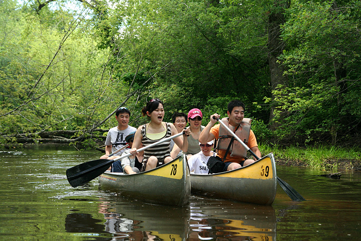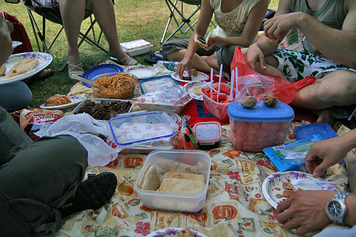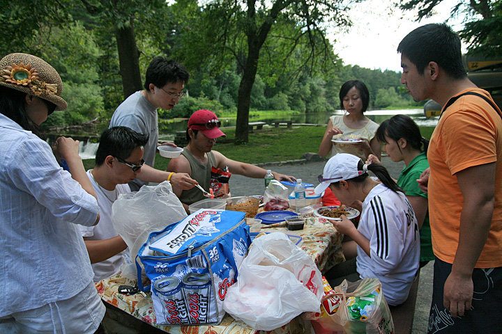 little did i realize they would be having a full-blown picnic, so i felt embarassed that i didn't really bring anything to contribute. if you know anything about how chinese people operate, you'll know that they take eating very seriously. if fact, given the choice of several activities, i think the stereotypical chinese would choose eating above all else. so we camped by the kiddy pool ($5 to park) and had a big feast. it was quite amazing the amount of food everyone brought. since i didn't bring anything, i felt bad eating, and only had a little bit (which left me hungry the rest of the day). the picnic lasted for about 30 minutes before we had to leave for the canoe rental place. just as quickly we arrived, we left just as quick. even they joked that people must've thought we were crazy to just come there to eat then leave.