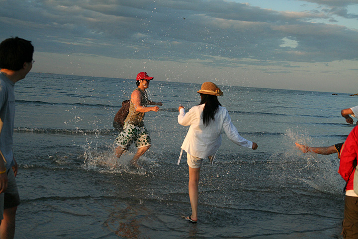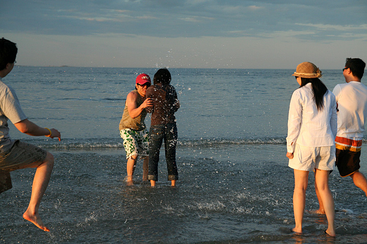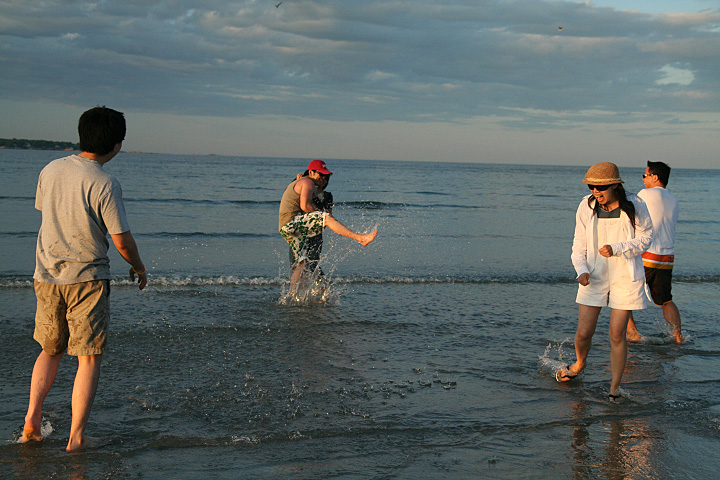 afterwards we all decided to grab dinner in chinatown, but two of the cars bailed out along the way (after some serious cellphone tag) and likewise both cecilia and i decided to call it a day. back in cambridge, near MIT, jerry and olivia dropped us off and cecilia gave me a ride to harvard square in her car. i walked home after buying an issue of newsweek, tired, hungry, and smelling of sunblock and sea salt. after a shower (and changing out of my wet jeans), i ate my two tin-foiled wrapped hot dogs for dinner.