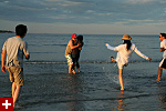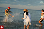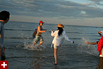 dingo's moment of shame came when the group ganged up on him with a kicksplash attack (earlier he was splashing everyone else); he grabbed his girlfriend and used her as a human shield.