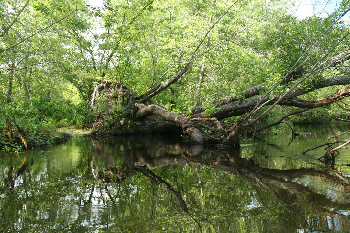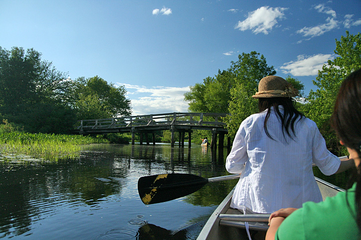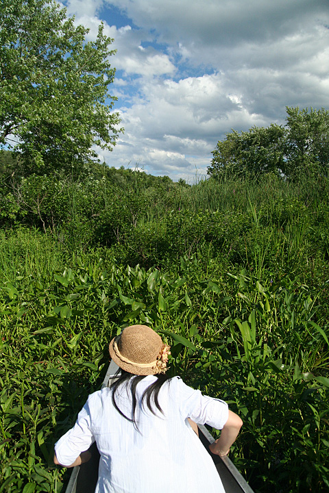 just when i thought i had everything figured out, disaster struck: we crashed into a shoreline a little bit too quick, and the tree branches acted like jousting poles, pushing us sideways and tipping the canoe. immediately we took on water and scrambled to upright ourselves before we completely submerged. my camera got a little wet, and some water got into the battery compartment, but it still worked. we crawled on shore, our feet sinking into the wet mud. everyone else had shorts and flip flops, but i was the only person in jeans and hiking shoes (actually just my regular shoes) so the entire lower half of my body was soaked. jerry and i flipped over the canoe to drain out the water before we all got back inside.