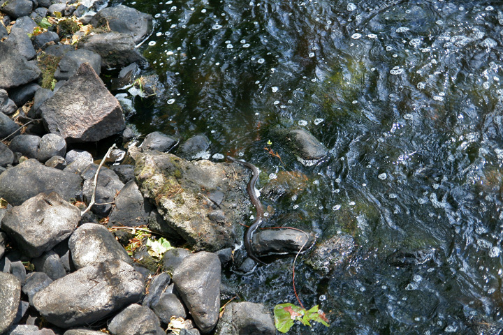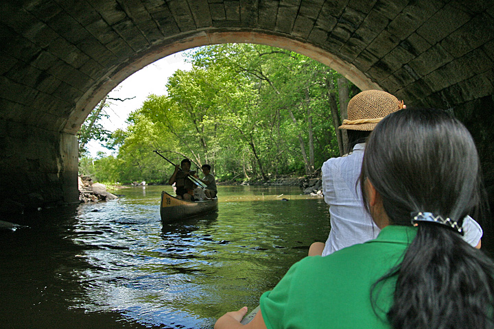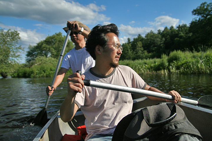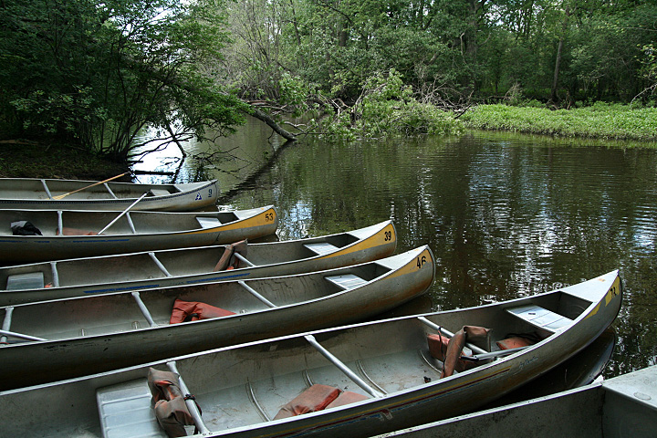 the foote brothers canoe rental place was just a short 5 minute drive away. there was another car waiting for us, a fourth group comprising of a couple and the woman's parents, who were there just for the canoeing. we ended up renting 4 canoes ($40/boat). while waiting for them to get our canoes, we saw water snakes sunning themselves on the rocks besides the dam. the rental company drove us to a point up the ipswich river with stacks of canoe in tow and let us off at a launching site. we all got into our boats and pushed off down the river. it was my first time canoeing. right away with had trouble, as our canoe spun around and crashed into the opposite shore. it took a few minutes for jerry and olivia to coordinate and regain control of our vessel.