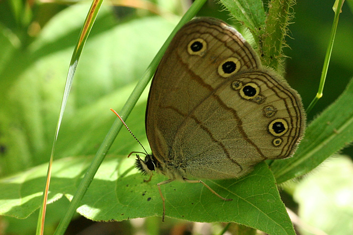 two firsts: i've never been able to get a good photo of a spring azure, those tiny blue butterflies that flutter in the woods as a harbinger of spring. even though the one i got today is a pretty good quality, it still doesn't show it with the wings open, which are blue-violet inside. i also got my very first photo of a little wood satyr butterfly. they're brown butterflies that can be identified by the eyespots which each contains 2 blue pupils.