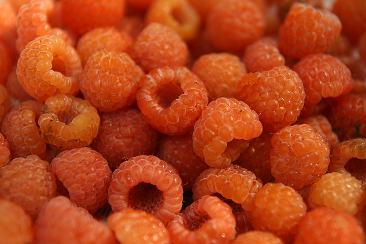 i collected a ziploc bag full of raspberries before coming back home. these are the most amazing raspberries. not a hint of tartiness, just a mild sweetness. i'm starting to think they might be an heirloom variety of some sort because i've never seen raspberries like that before.