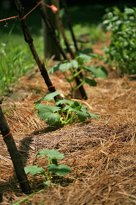 my parents' backyard garden mirrors my own community garden plot: growing are tomatoes, cucumbers, peppers, and basil. however, unlike my garden - which i provide almost daily maintenance - my parents' garden needs some TLC.