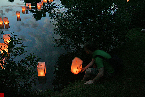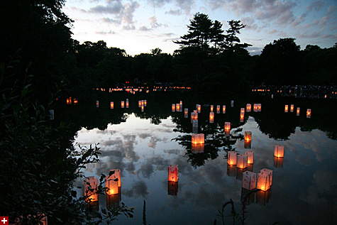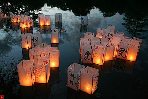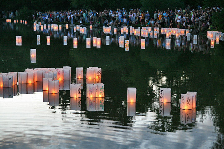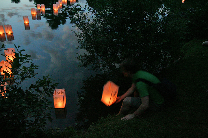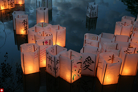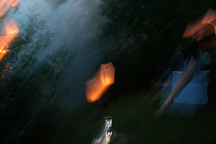 while snapping away by the edge of the pond, a girl tapped me on the shoulder (i hate getting tapped on the shoulder when i'm taking photos, it's usually not a good thing) and asked if i could please not take photos of her lantern. i agreed and felt immensely guilty afterwards. while i see the lantern festival as this hokey little celebration, there are others who are very serious about it and see it as a spiritual remembrance thing. there are lanterns just for fun and then there are the sober lanterns, with messages about dying or dead loved ones, or hopeful thoughts about distant relative or friend.