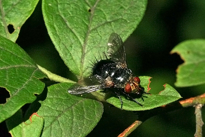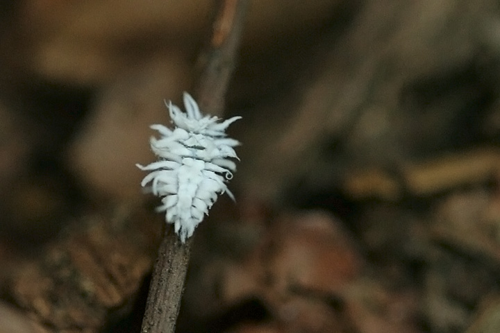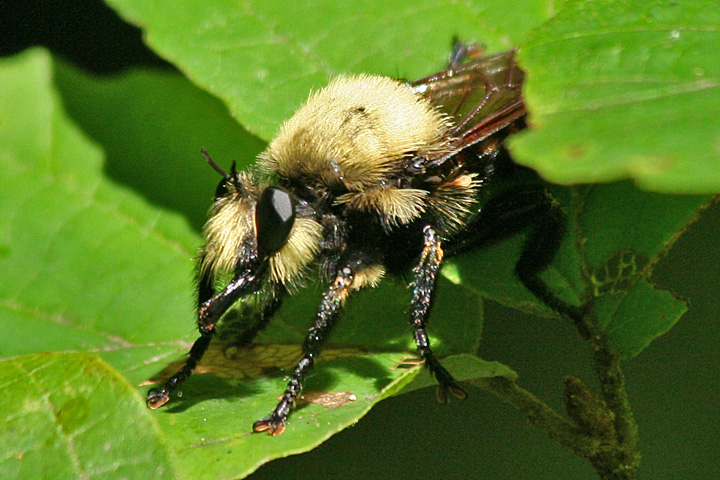 other than wildflowers and mushrooms, there wasn't a lot of wildlife. come to think of it, even though i heard birds, i didn't even see any (normally i'd get a robin or two pecking leaves on the trail). the one cool thing i saw was a large bee-mimicking robber fly. i've seen them before but never one this large (close to 2cm). it was fearsome looking, and didn't even have a normal piercing proboscis of other robber flies, but instead had this dull chisel of a mouthpart to puncture the tough exoskeleton of its prey. i snapped a few pictures with the telephoto but by the time i changed to my macro lens it flew away. and is it just me, but am i the only person who thinks robber flies resemble motorcycles?