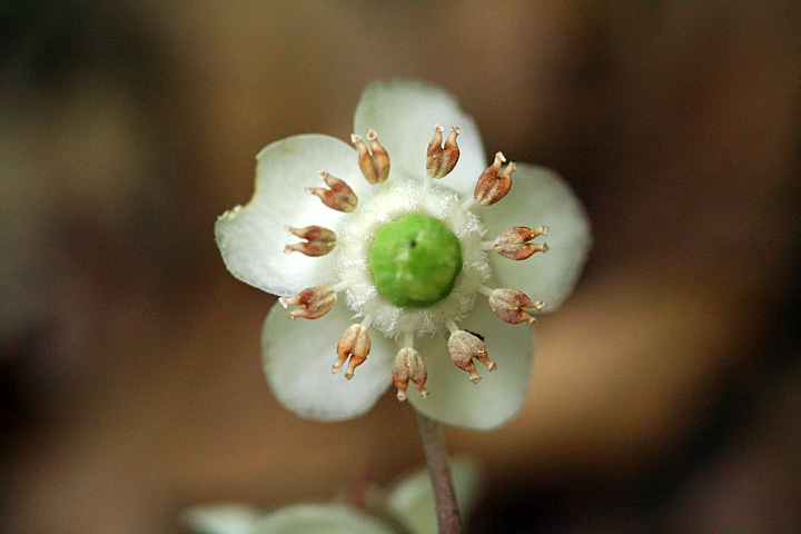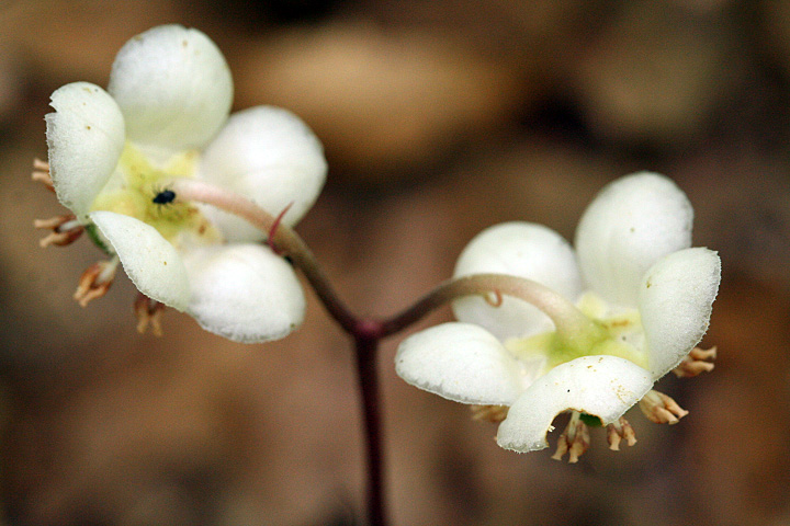 i see spotted wintergreen growing on the forest floor all the time but i never noticed their beautiful and intricate flowers, which are currently in bloom. they remind me of pitcher plant flowers.
