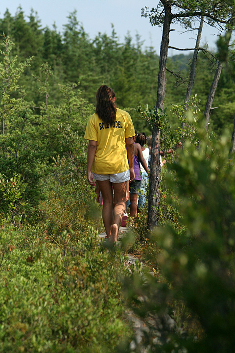 right next to the bog is a summer camp. after i made it to the end of the boardwalk, i heard the unmistakable sound of noisy children. i braced myself for impact, as a few dozen kids with their teenage camp counselors came charging down the boardwalk. the boardwalk is narrow, hardly enough space for one person, let alone two people trying to pass each other. nevertheless, i was able to let the large group go by relatively unscathed. "i like your camera," one of them said, touching the barrel of my telephoto, prompting everyone does to do the same as they went by me. "leave that nice man alone," one of the counselors told them, and rolled her eyes when she saw me. nice man. that sounds so old. i bet most of those kids were born in the late 90's, if not this century. later i heard loud screaming. since the kids were with their counselors, i wasn't too worried. when they came back around to leave the bog, i saw one of the little girls was covered in mud - apparently she'd fallen into the bog!