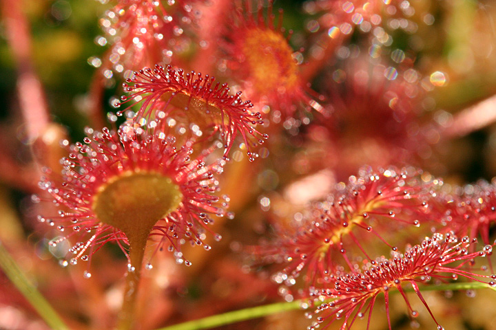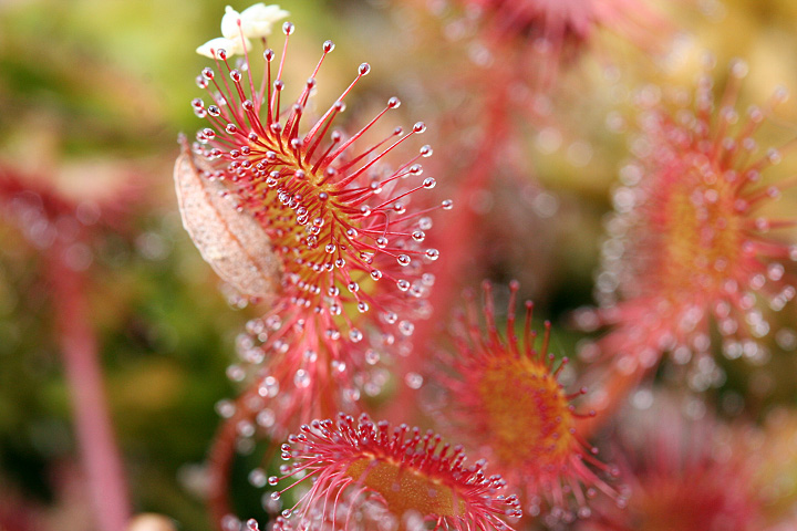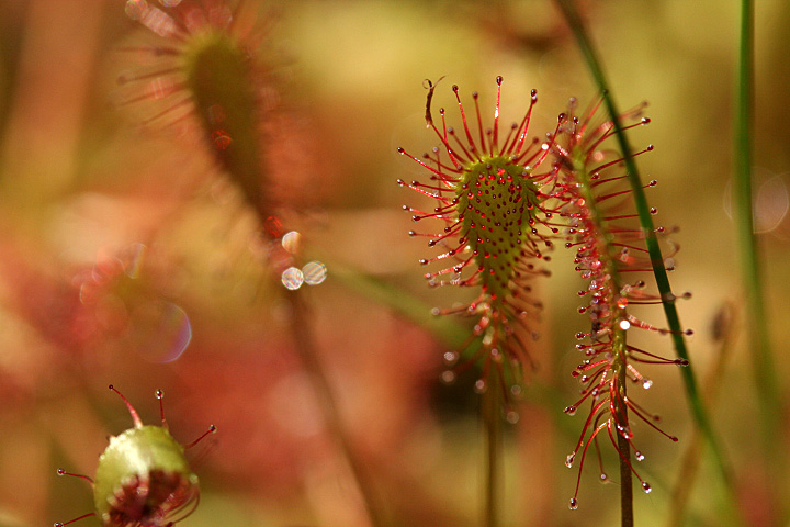 i tried to find sundews that were in some sunlight so i could really showcase their glistening sticky dew drops. i found it really hard get the correct depth of field: more depth of field means lower shutter speed which translates to blurrier photos.