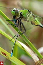 since i've seen those before i didn't bother getting any photos; however, i did spend a long time shooting a green female pondhawk dragonfly eating a damselfly. when i first spotted her i didn't realize she was feeding, but i should've figured it out because she didn't fly away when i got close enough to take some photos. that's when i noticed she'd grabbed a damselfly by the end and was eating it alive. dragonflies - with their big cartoon eyes - seen pretty innocuous, but they're actually pretty ruthless predators, eating other dragonflies (like in this case) (notice the red mite parasite on the green pondhawk).