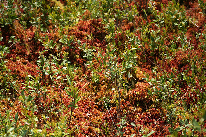 besides the sundews, the second showcase plant of the bog are the pitcher plants. from past visits i sort of have a mental map of where they are (they're perennial, so they always appear in the same spots)