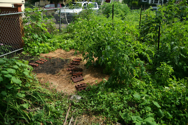 in the afternoon i finally ventured outside to run some errands. i went to my garden to do some watering and bumped into that guy who called me early last saturday morning. i realized we actually met before, at my neighbor renee's 64th birthday party, one of her cambridge hippy friends. he asked me to do some watering for him while he went on vacation for a few weeks; in return, i could help myself to his cherry tomatoes and string beans.