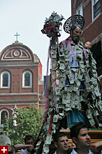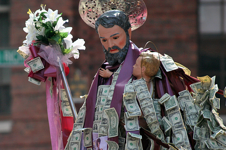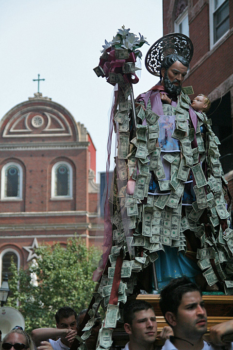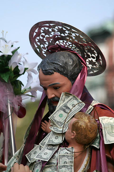 i found myself in the north end this afternoon attending the feast of saint joseph. so who is this saint joseph and what makes him so special to have a celebration in his honor? the joseph in question is none other than mary's husband AKA jesus' stepfather. that'd explain the baby in his arm (little aryan jesus) and his flowering staff (that's how people were able to figure out he'd be a good daddy for jesus).
