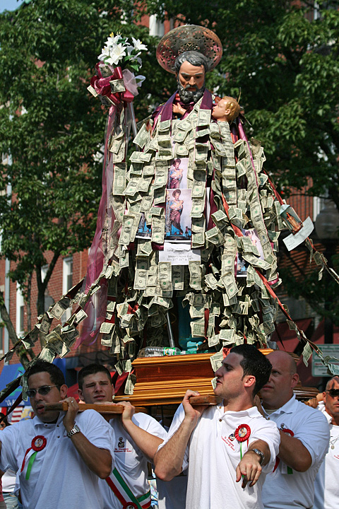 the procession went like this: the marching band would lead, followed by a team of supporters holding up the statue of saint joseph covered in money. they'd go from street to street, stopping frequently to let people walk up to the statue to pay their respects and add more money. (past processions: st. calogero, fisherman's feast 1 and 2).