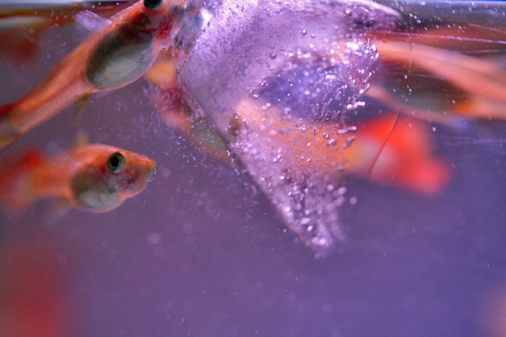 seeing the male guppies huddled near the surface of the aquarium gasping for air and trying to stay cool stirred me into action. i immediately did water changes on all 4 of my currently active fish tanks. several gallons of aquarium water were siphoned out, replaced with several gallons of cold tap water (treated). i also added some ice cubes into each tank, which at the very least temporarily lowered the temperature by a few degrees.