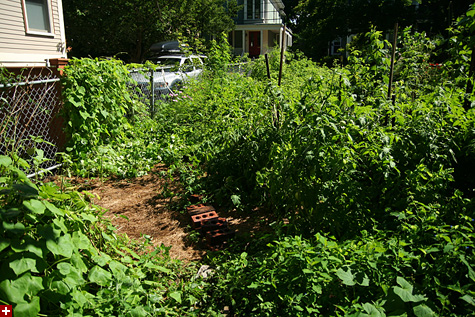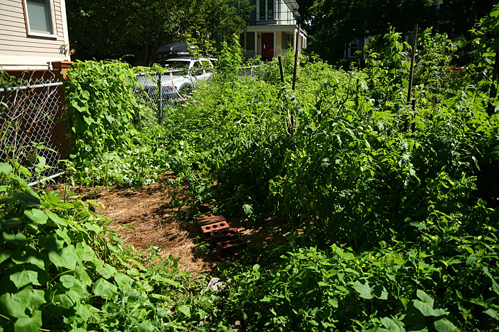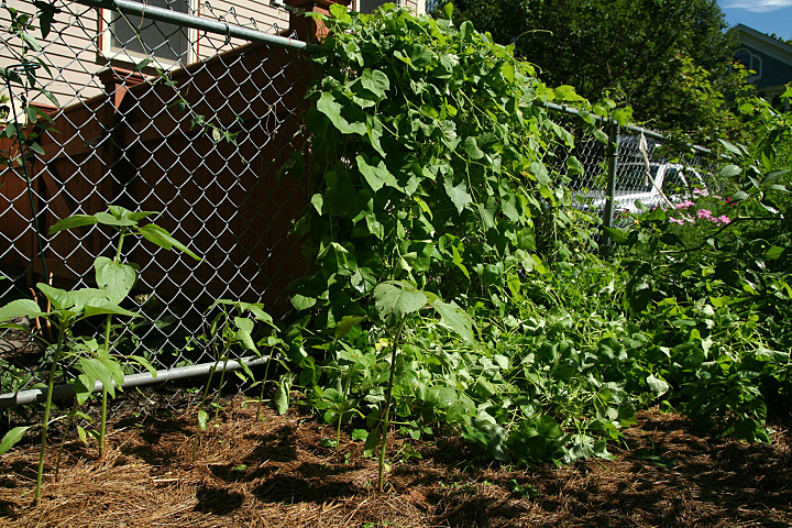 since my last photo, my sunflowers and cucumber-morning glory fence have grown even bigger. there hasn't been a lot of cucumbers though, and the ones that are still on the vine seem stunted. i don't think i'm going to get anymore cucumbers this season since i haven't seen any new flowers. maybe the morning glories are competing too successfully with the cucumbers.