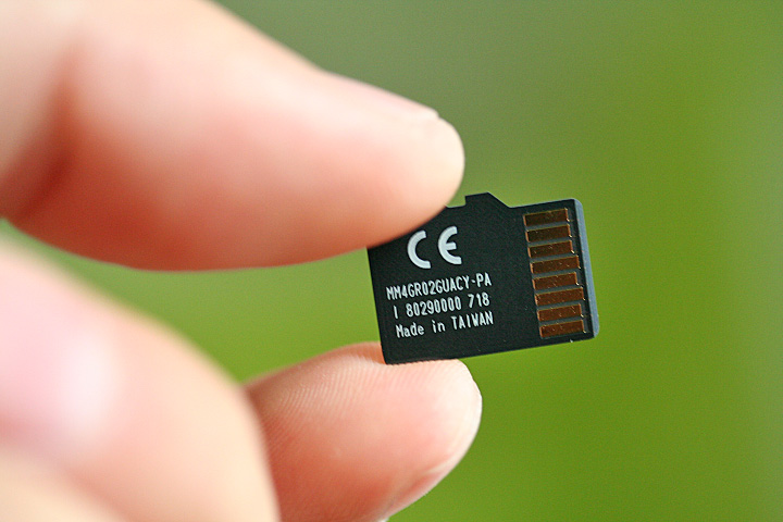 my microSD memory card for my sansa express mp3 player finally arrived today. i wasn't quite prepared as to how small the card actually was. and to think it can hold 2gb worth of data! i remember my first external hard drive for my mac plus back in 1986, it held 20mb and was bigger than a metal lunch box. to think this little "paint chip" can hold 100x more data than my circa 1986 external hard drive - that just blows my mind!
