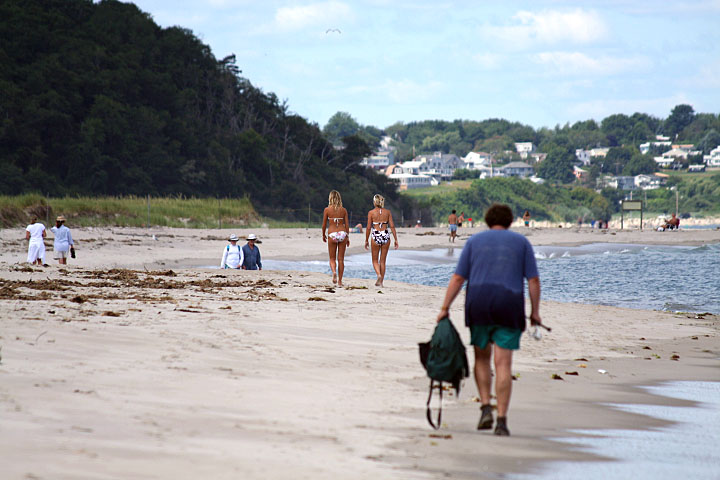 around noontime we returned to the parking lot to retrieve our lunches and ate at one of the picnic tables at the visitor center. back at the car i got rid of my jeans (i had swimming trunks underneath) and went barefoot since we wouldn't be doing anymore trail walking. we decided to see how far we could walk down the length of the peninsula along the edge of the beach were the wet sand was more compact and easier to walk.