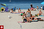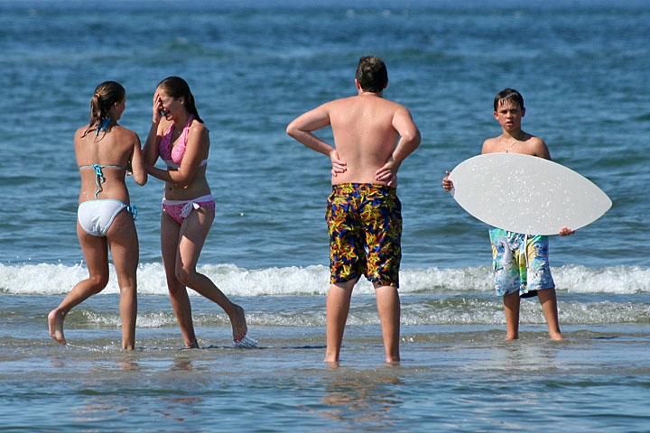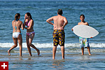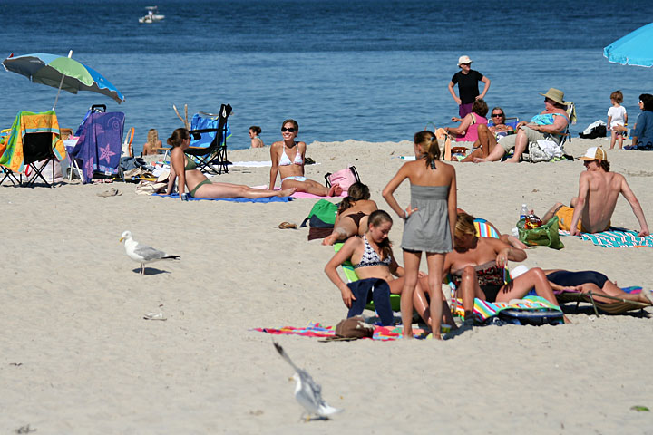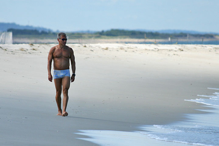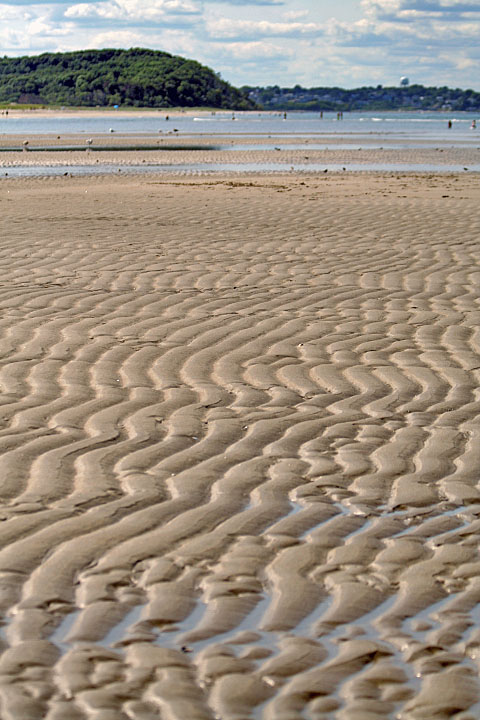 we walked about 2 miles down the length of the beach before we decided to stop and try out the ocean. the water was cold but bearable considering today was in the 80's. after that we headed back, passing through the not-so-secret gay section of the beach (a hairy bear was naked inside his little self-assembling screen house), with the tide receding revealing vast expanses of undulating beachfront.