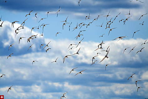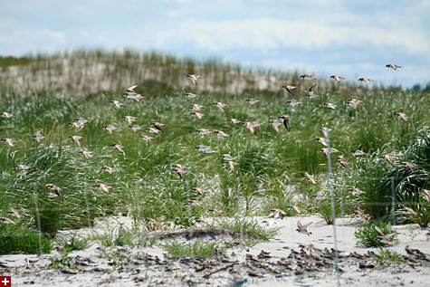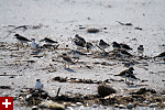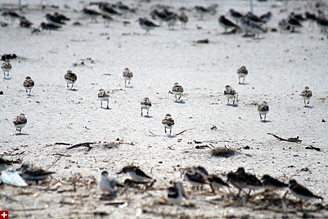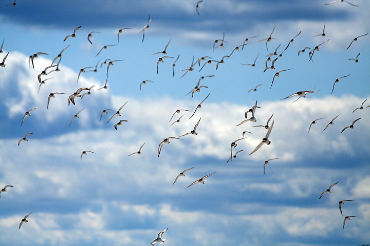 at one point a police helicopter flew overhead, scaring all the birds into taking flight. for a brief moment the sky was filled with plovers and sandpipers.