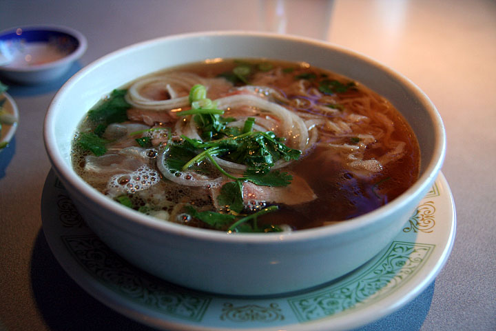 even though there were all this delicious food for sale at the festival, in my infinite wisdom i didn't sample any of it, even though i was kind of hungry. on the road back, i passed by a few southeast asian restaurants. at the next one i saw, i pulled over to have an early dinner (by then it 5pm). here was the pho da lat restaurant, actually the second one (the original is in downtown lowell). the large aquarium by the entrance caught my attention, followed by the lovely young waitresses dressed in matching red blouse and black pants. i ordered the medium beef pho, which was actually sort of expensive at $7. it tasted pretty good however and i quickly wolfed everything done before leaving paying my check.