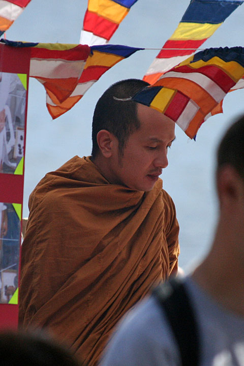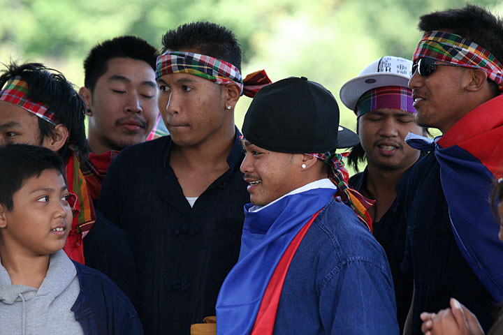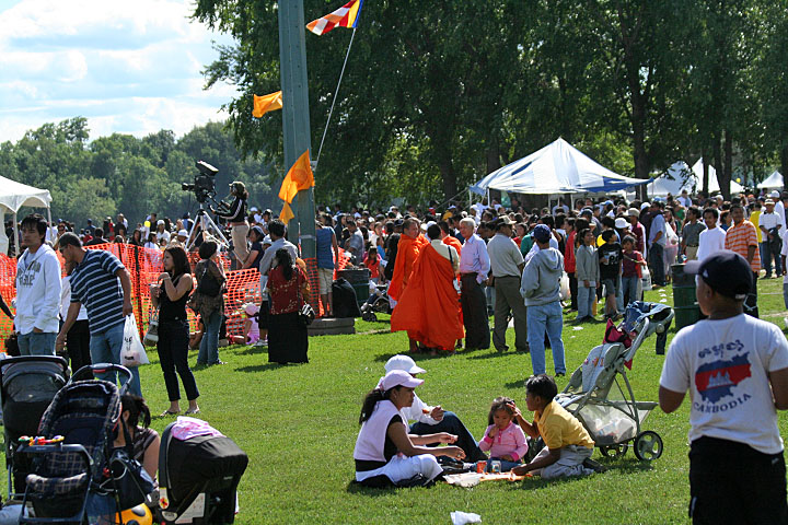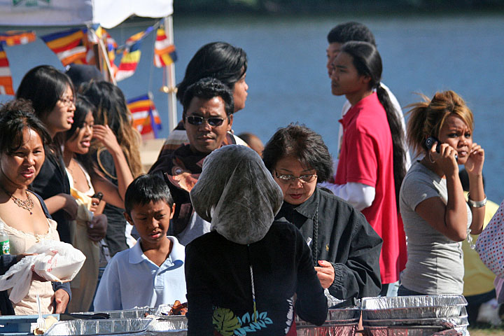 even though it's called the southeast asian water festival, most of the people there were either cambodian or laotian. i didn't really see any thai or vietnamese, much less burma and the indonesian/malaysian islands. cambodian and laotian flags flew from tents, angkor wat t-shirts and replica statues were on sale, as well as cambodian pop culture in the form of dvd's and cd's. there was also a myriad of food tents, most with long lines. clothing, toys, ingredients, even plants. buddhist monks set up tents in hopes of garnering donations. as for the folks there, it was an amazing place to people watch. my only regret was i arrived too late and most of the performances were already over. i was able to catch the boat race award ceremony, but i think there were only 4 boats racing or something and some of the winners didn't even bother showing up to claim their prizes.