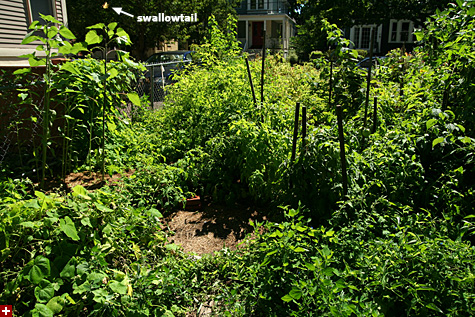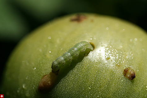 i pulled out the caterpillar with a pair of makeshift twig chopsticks and quickly sent it to bug heaven. upon further examination of my other tomatoes, i discovered another one with holes in it (unfortunately i couldn't find the caterpillar that ate that tomato). here i was all worried about tomato thieves (julie had one of her tomatoes stolen before she left) when right underneath my nose something else was putting my crops in danger. when i got back home i looked up the caterpillar: turns out it's a tomato fruitworm. like the name implies, it feeds on tomatoes, but it also eats corn, lettuce, and many other vegetables - making it a serious crop pest ("one of the most destructive"). i'll have to go back to the garden and check and see if i can find any unhatched eggs. if only they transform into beautiful butterflies! then i might be able to tolerate some fruitworms, but alas, the adults become nondescript moths.