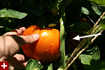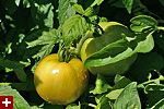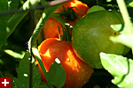 the monster tomato has turned red! i collected 5 tomatoes from my garden today: 3 the size of large oranges, 2 the size of grapefruits.